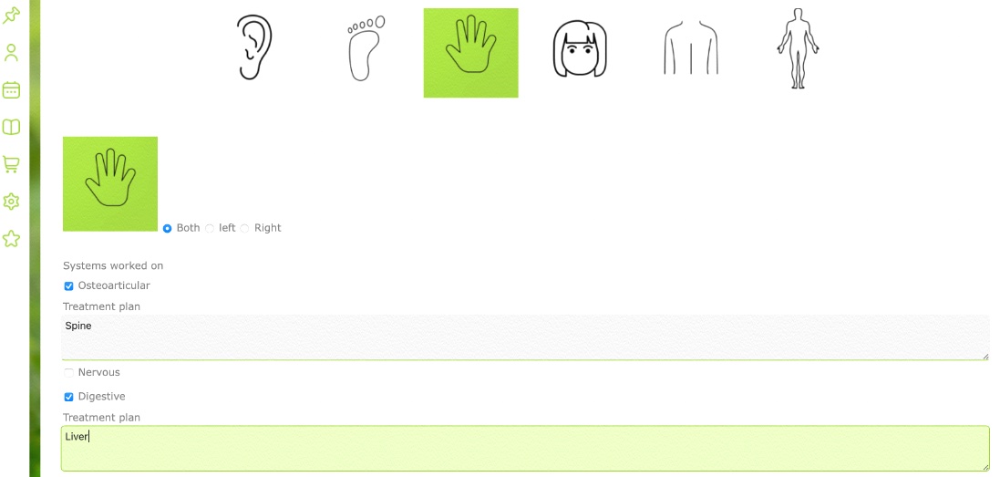 For reflexologists, we've added an option that allows you to specify the different parts of the body you've worked on during your consultations.